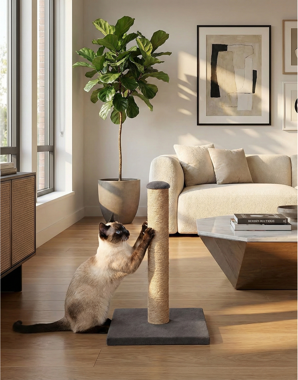 Tırmalama tahtası tüm kediler için uygundur. Ayrıca sağlam bir şekilde durabildiği için kaşınma işlemlerini de gerçekleştirebilirler. Doğal ip malzemesi güvenle kullanılabilir alt tabanı düz bir şekilde durmasına yardımcıdır.