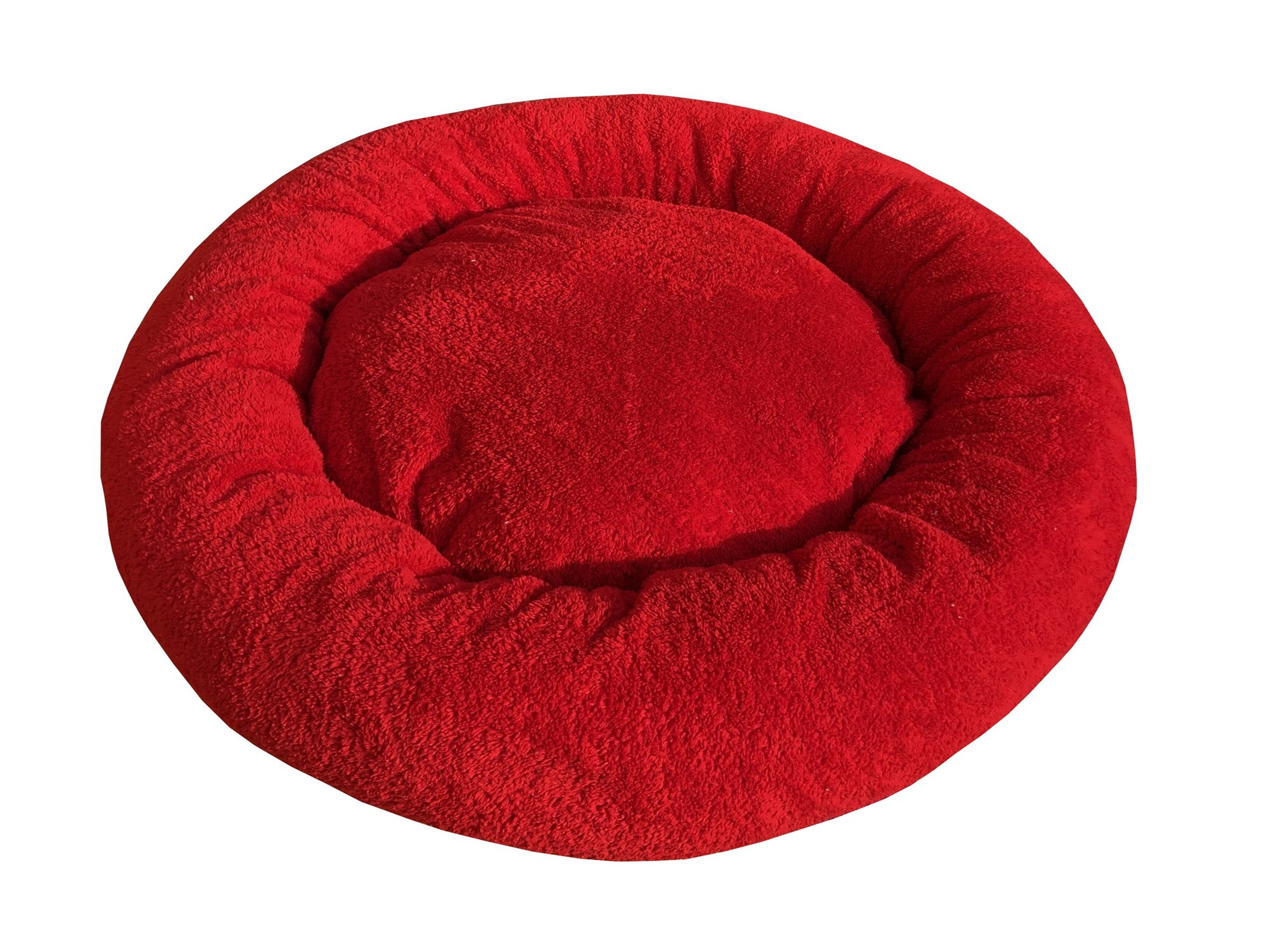 Peluş Simit Kedi Yatağı, Küçük Irk Köpek Yatağı, Kırmızı